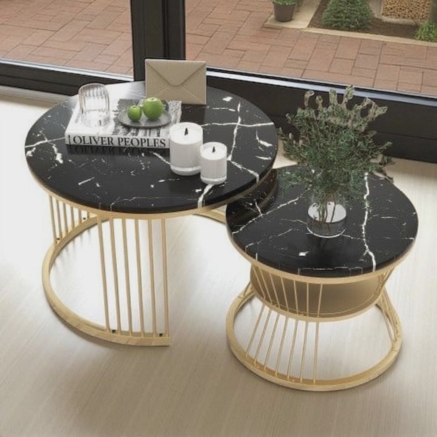Product Name:(Original SKU WF296678AAB) Modern Nesting Coffee Table, Coffee Table Set Marble Veneer Sofa Side Nest of Tables Round End Tables, Set of 2, Golden