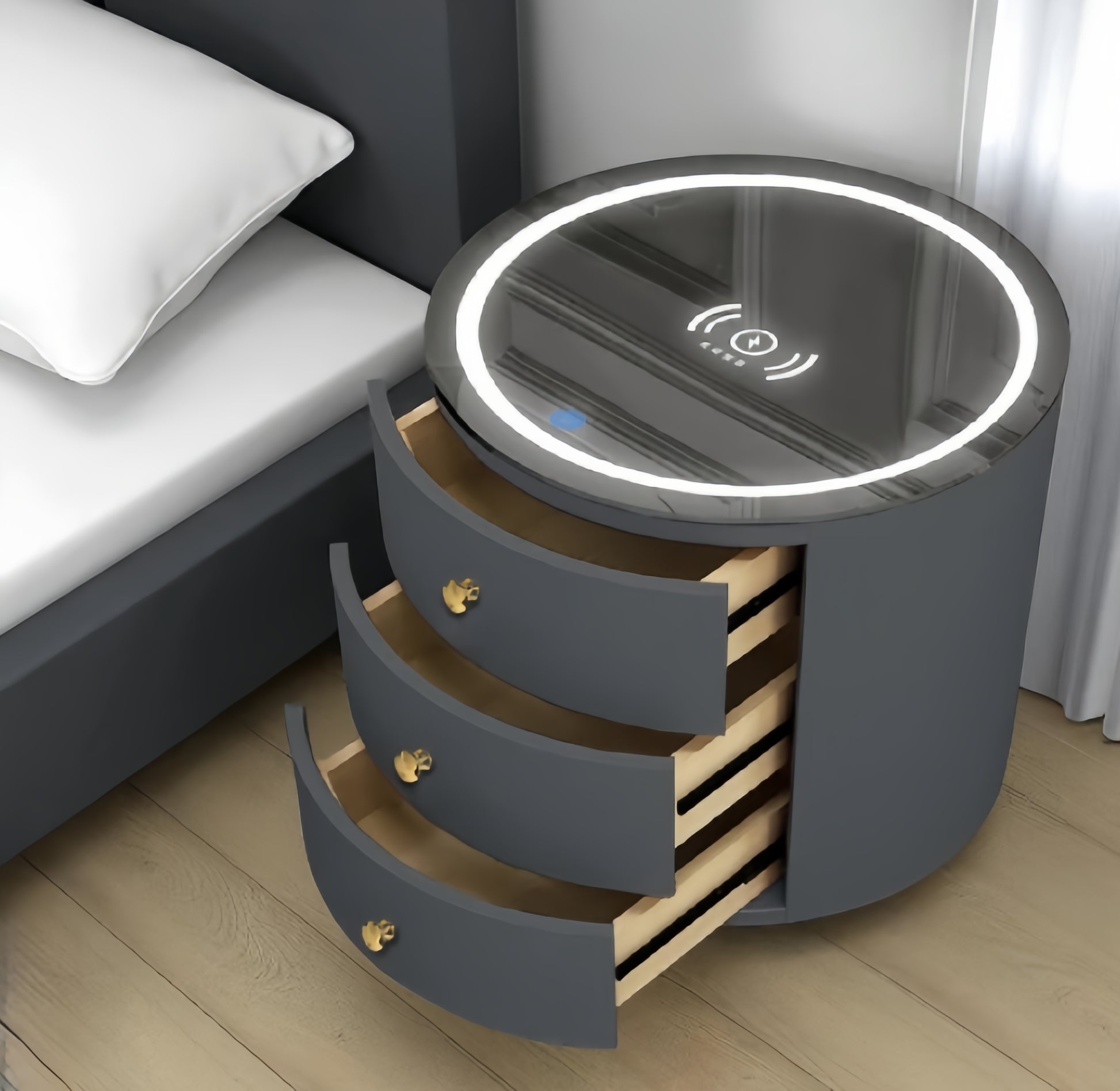Round Multi-Function Audio Bedside Table